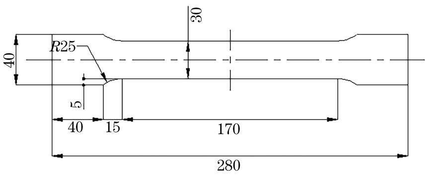从全尺寸BS960E热轧高强钢板上截取规格为500 mm×2 080 mm×6 mm(长度×宽度×高度)的试样。试样的屈服强度为978 MPa,抗拉强度为1 002 MPa,断面收缩率为12%,冲击吸收能量为58 J。试样的化学成分如表1所示。