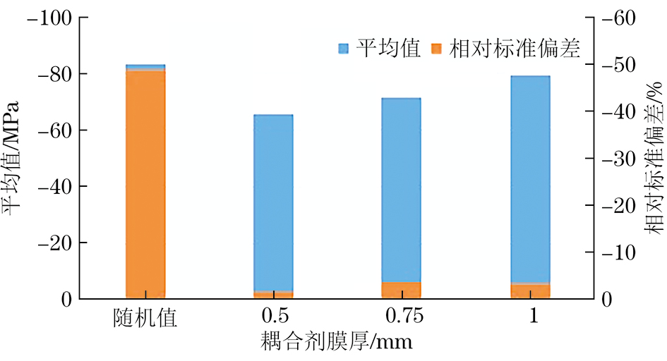 耦合剂膜厚/mm | 残余应力测试值/MPa | ||||